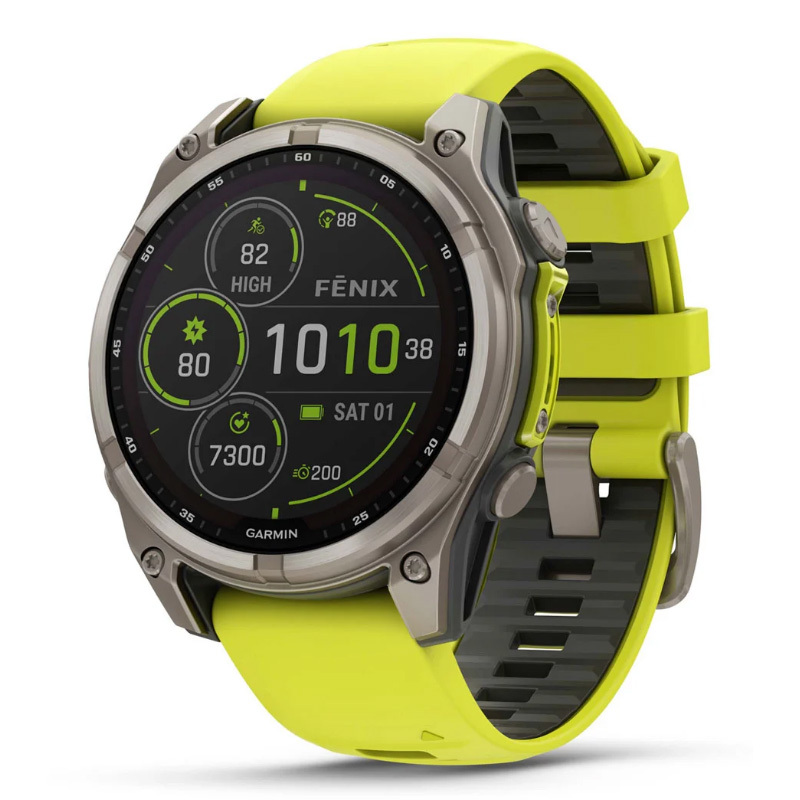 fēnix® 8 – 47 mm, Solar, Sapphire Sapphire, Titanium with Amp yellow/graphite silicone band PART NUMBER010-02906-21