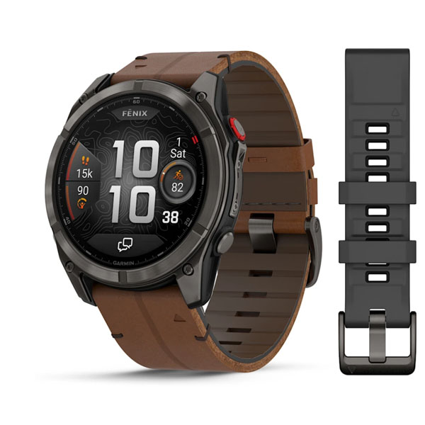 fēnix® 8 Pro – 51 mm, AMOLED Sapphire, Carbon grey DLC titanium with Chestnut leather band PART NUMBER010-03199-40