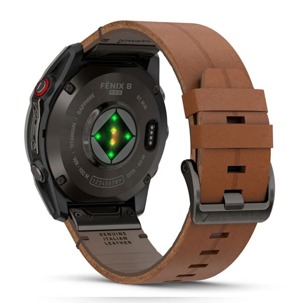 fēnix® 8 Pro – 51 mm, AMOLED Sapphire, Carbon grey DLC titanium with Chestnut leather band PART NUMBER010-03199-40